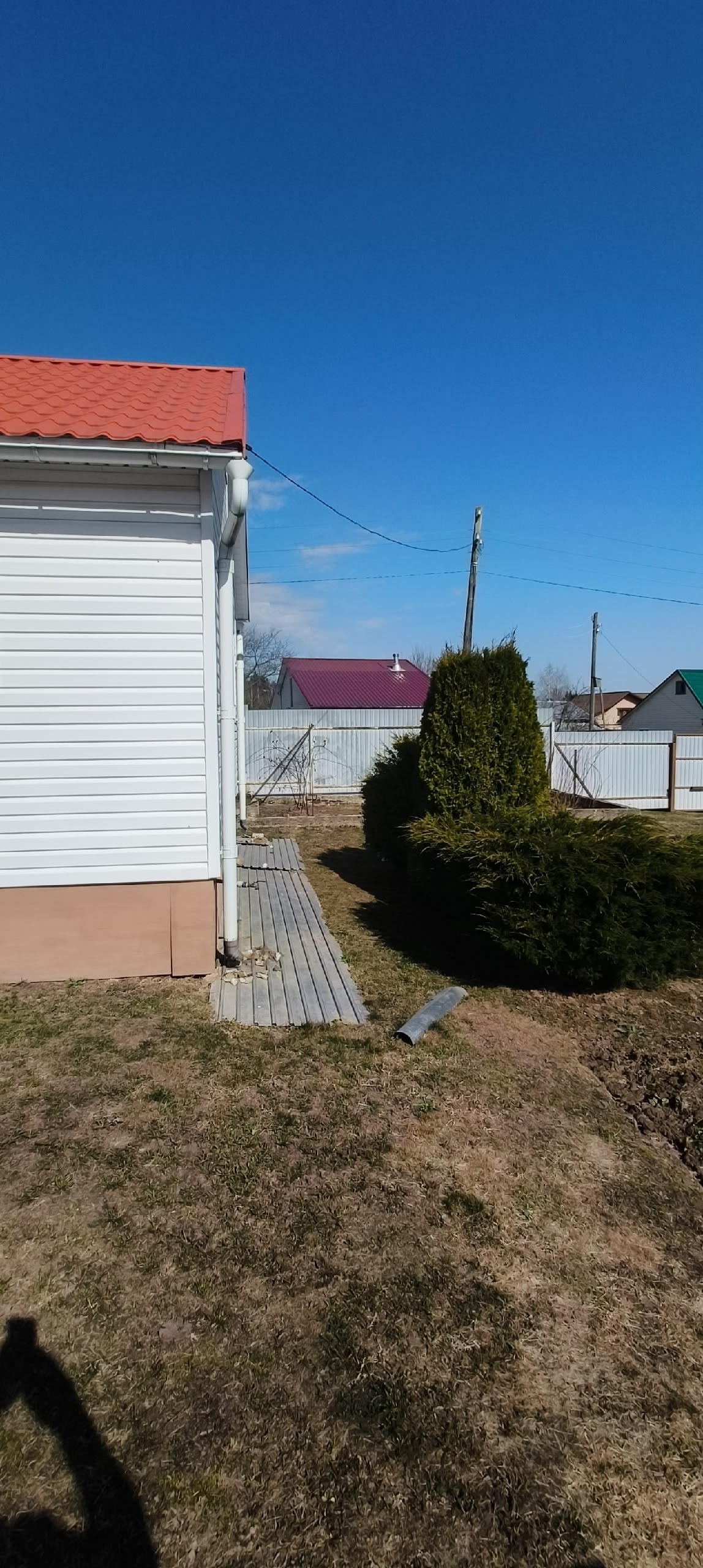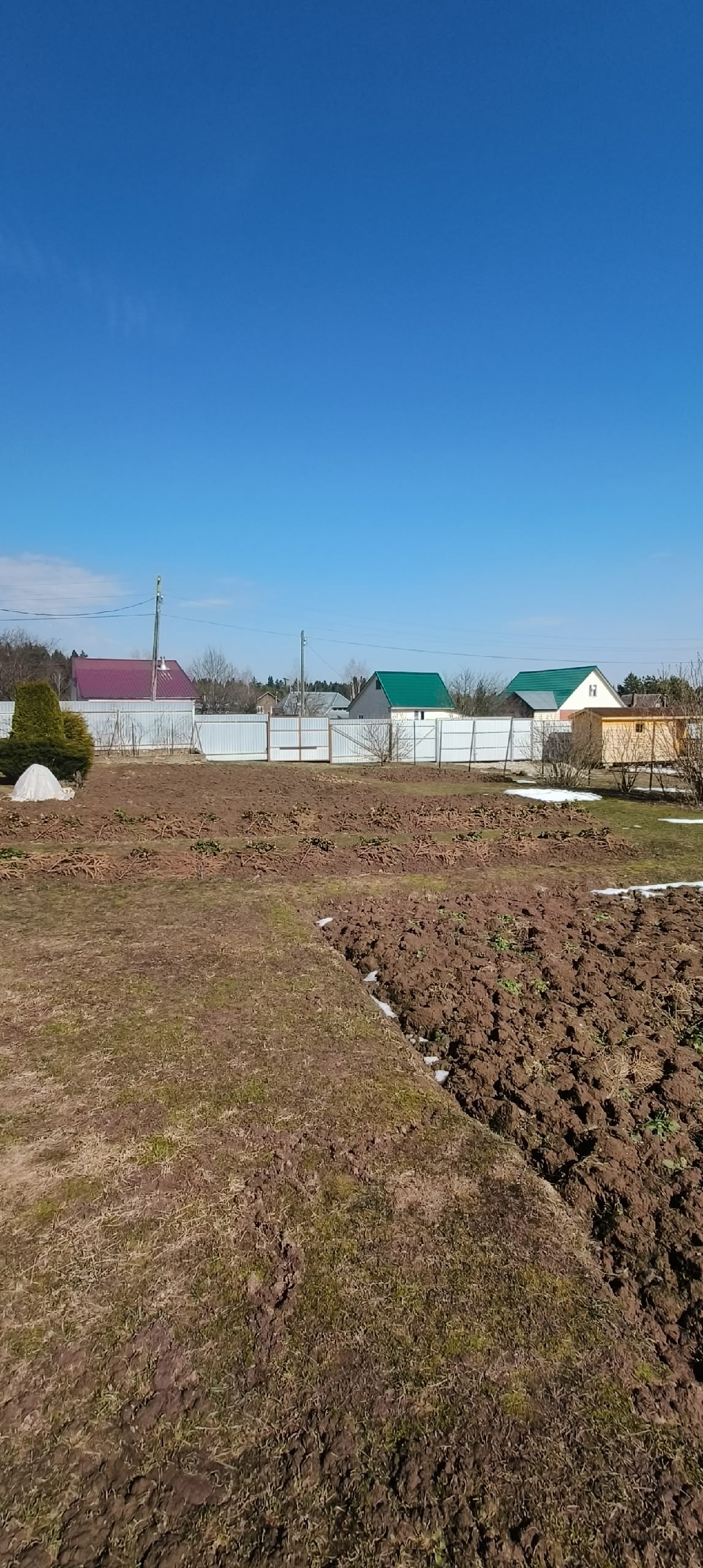 участок огорожен забором из проф листа,и металлическим штакетом