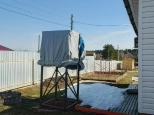 колодец,возле дома емкость с водой.Вода горячая и холодная
