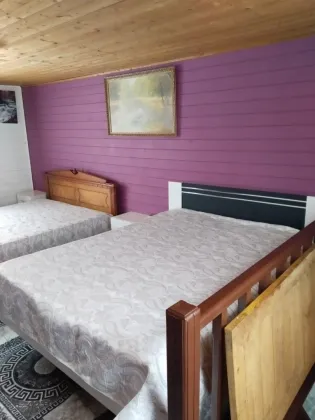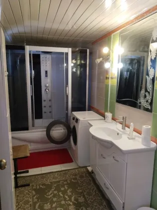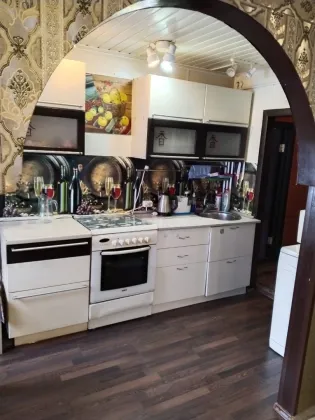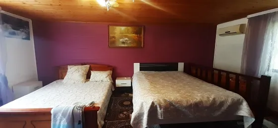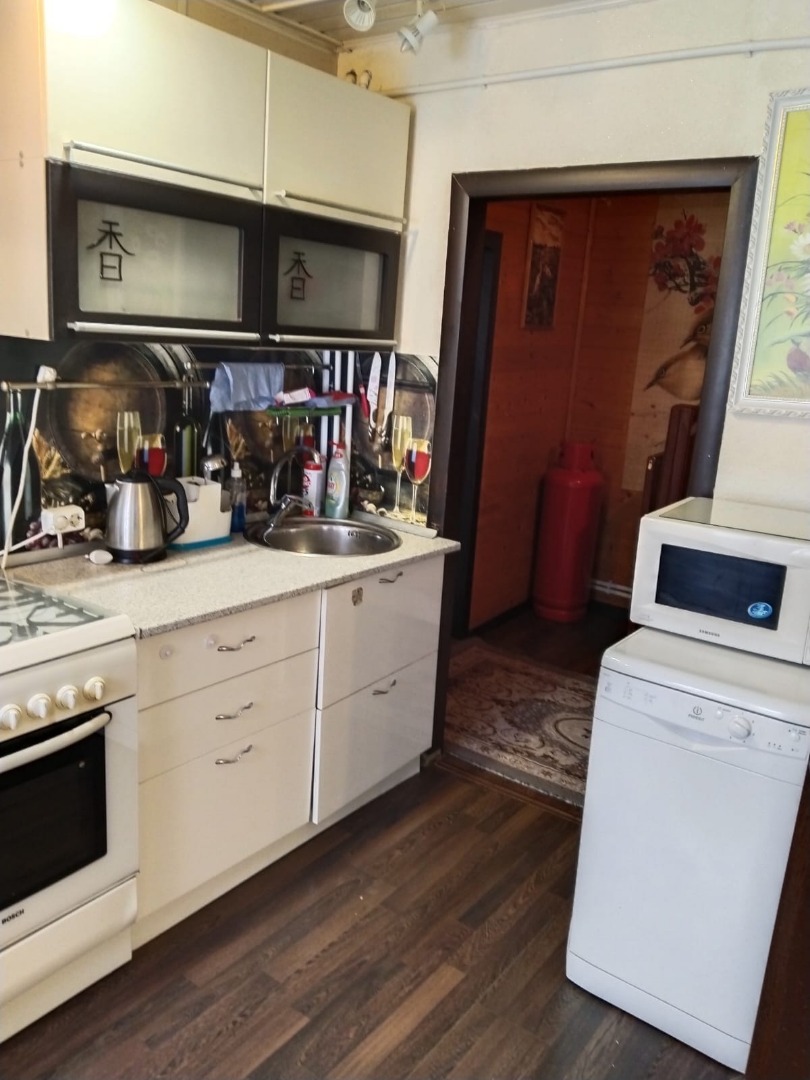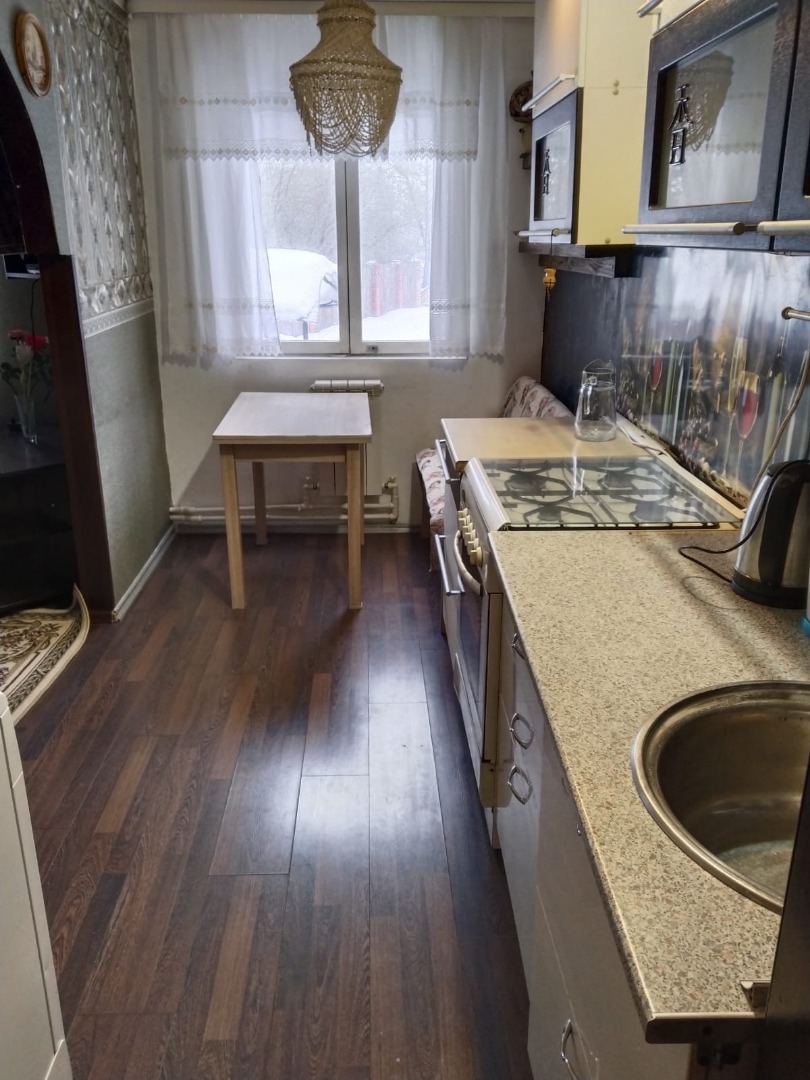 Дом полностью мебелирован, имеется вся необходимая посуда и техника. Центральный водопровод, газовое отопление, септик. На участке плодовые деревья.