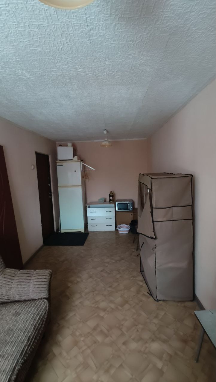 В комнате раскладной диван, холодильник, телевизор, стол обеденный Душ и туалет на три комнаты (под замком) Соседи спокойные.